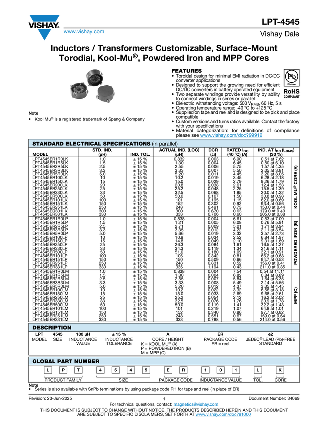 Inductors/Transformers Customizable, Surface Mount Torodial, Kool-Mu®, Powdered Iron and MPP Cores