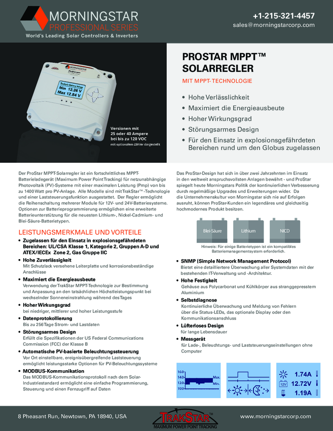 Solarny regulator ładowania Morningstar PS-MPPT-25M MPPT 12 V, 24 V 25 A