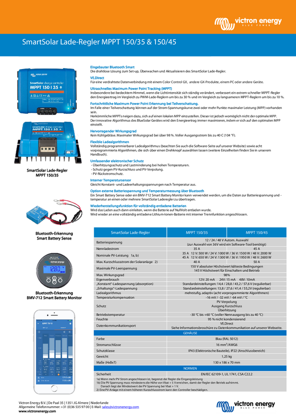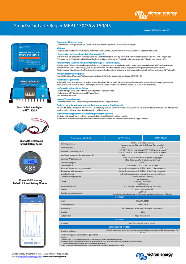 Solarny regulator ładowania Victron Energy SmartSolar 150/45 MPPT 12 V, 24 V, 48 V 45 A