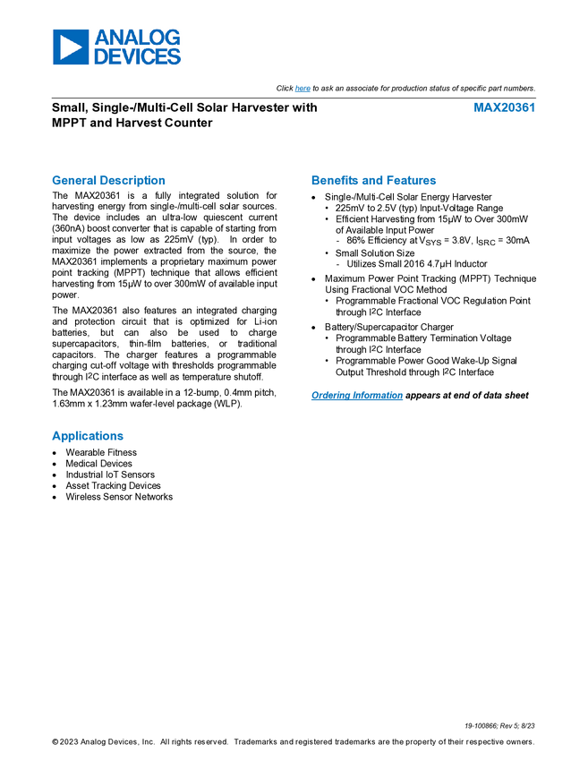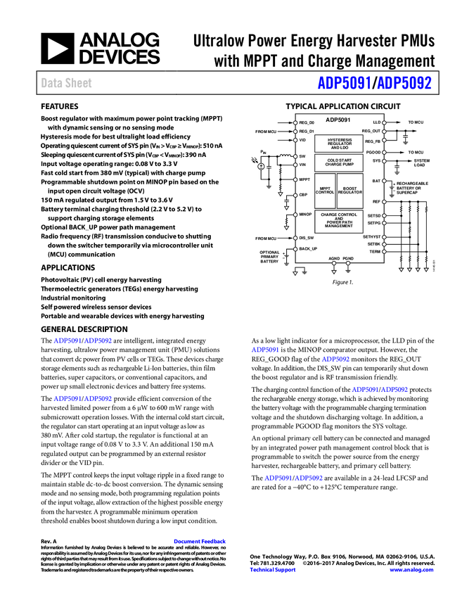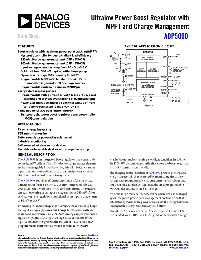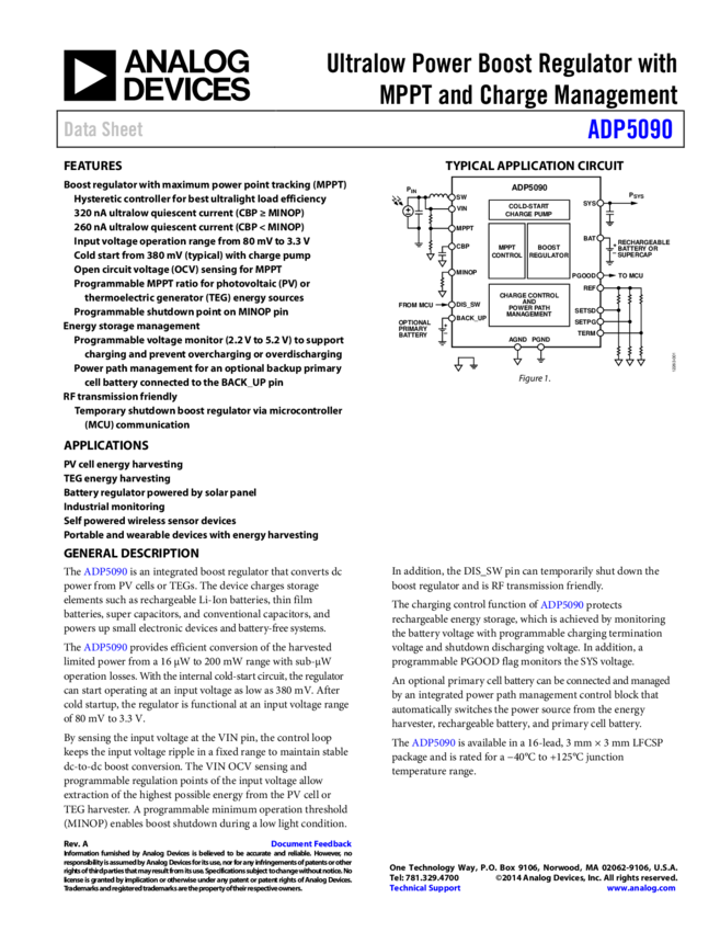 ADP5090: Ultra Low Power Boost Regulator With MPPT and Charge Management