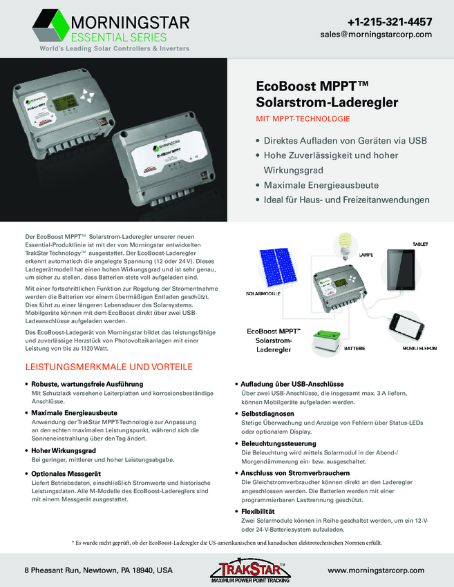 Solarny regulator ładowania Morningstar EB-MPPT-30 MPPT 12 V, 24 V 30 A