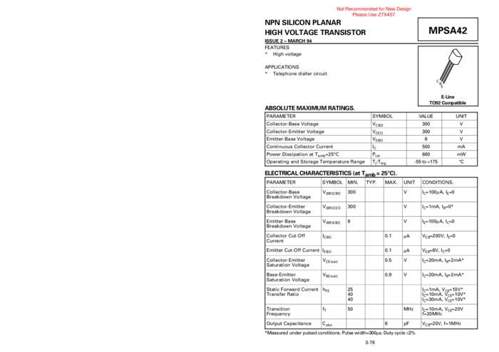 Vce 300V, Ic 500mA, NPN High Voltage Transistor, TO-92