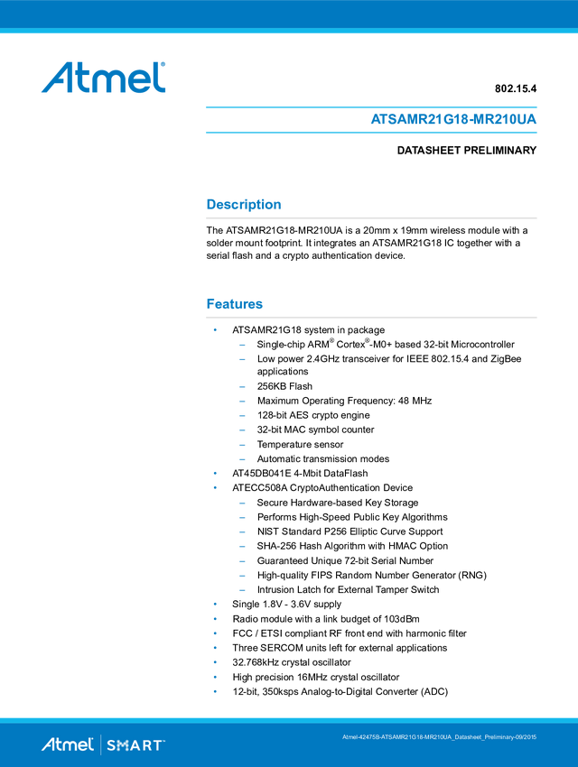 ATSAMR21G18-MR210UA - Complete Datasheet