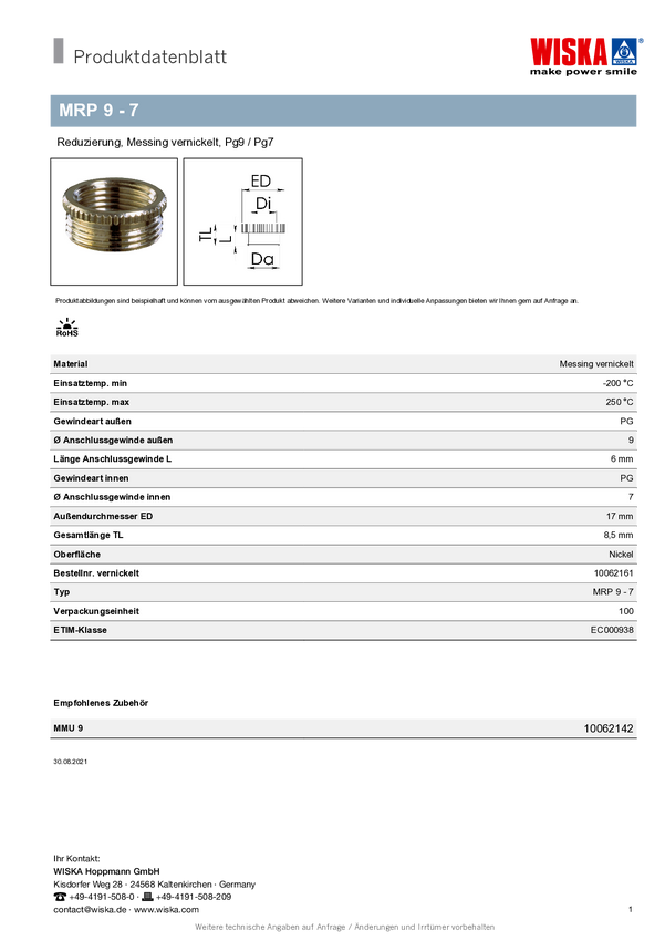 Wiska 10062161 MRP 9 - 7 PG9 PG7 mosiądz 100 szt.