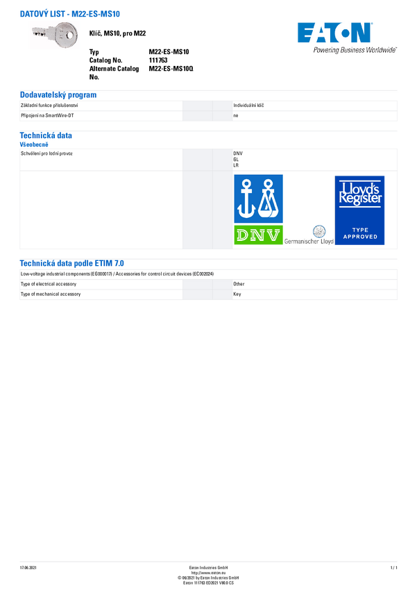 Eaton 111775 M22-WRS-MS10 Przycisk kluczykowy pierścień przedni z tworzywa sztucznego klucz czarny 1 szt.