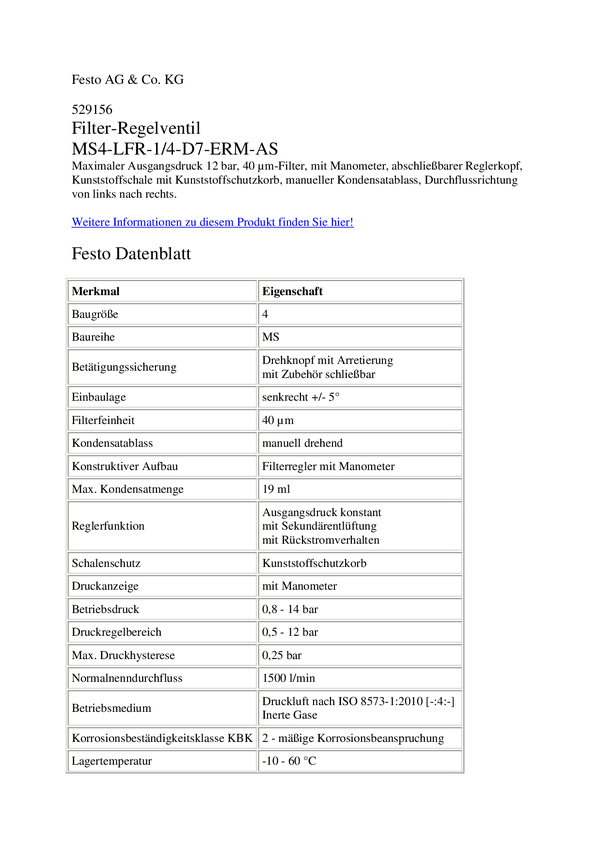 Filtr z regulatorem ciśnienia FESTO MS4-LFR-1/4-D7-ERM-AS 529156, 0.8 do 14 bar