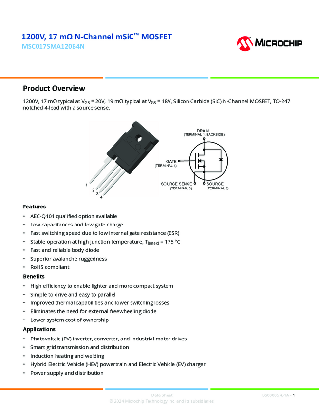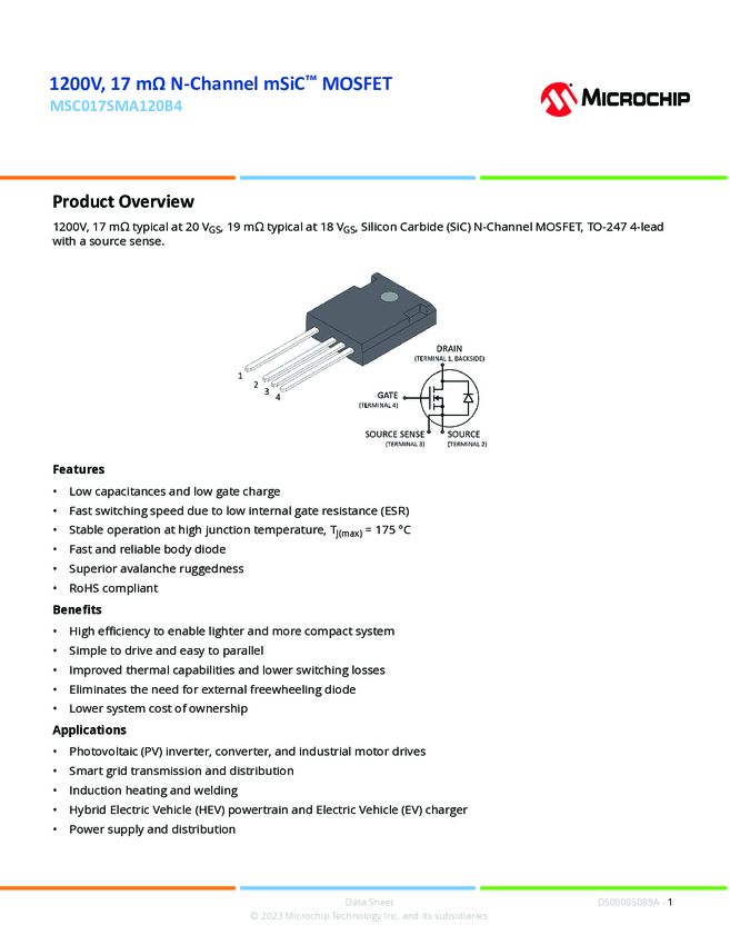 MSC017SMA120B4N 1200V, 17 mOhm mSiC™ MOSFET TO-247-4 Notch Datasheet