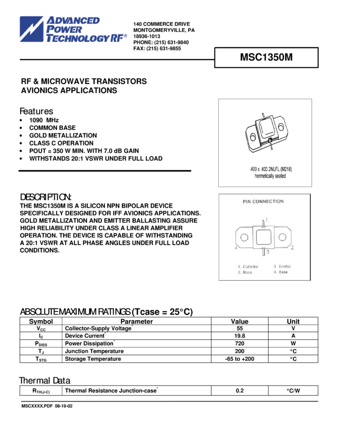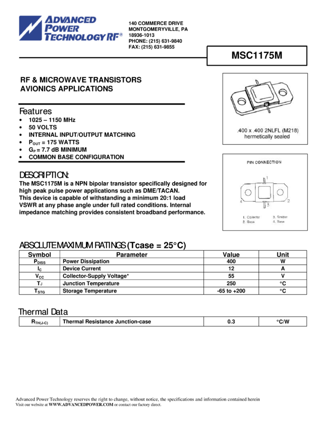 MSC180SMA120SC 1200V, 180 mOhm mSiC™ MOSFET PSMT Datasheet
