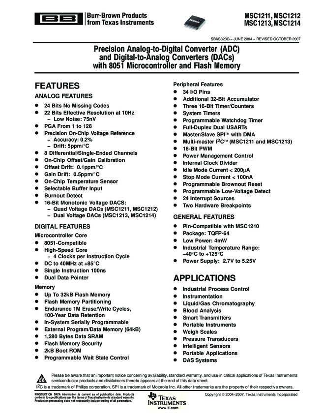 MCU 8-bit MSC1200 8051 CISC 4KB Flash 3.3V/5V 48-Pin TQFP T/R
