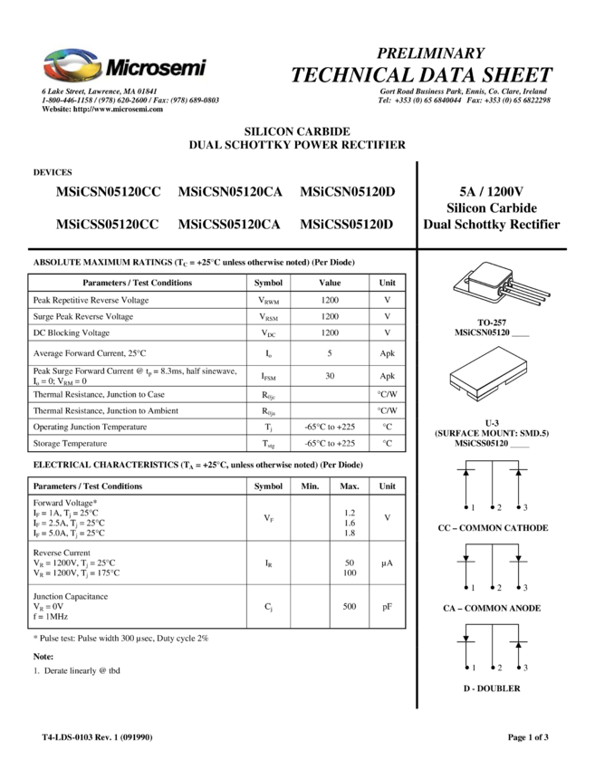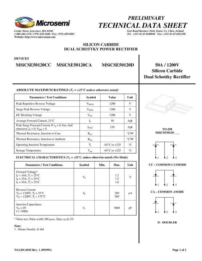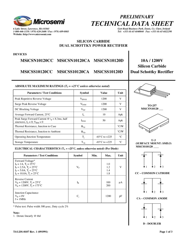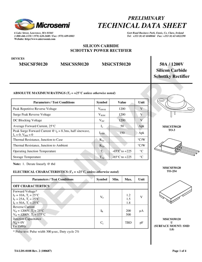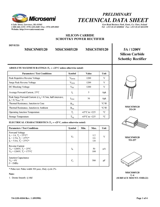 MSC360SMA120SC 1200V, 360 mOhm mSiC™ MOSFET PSMT Datasheet