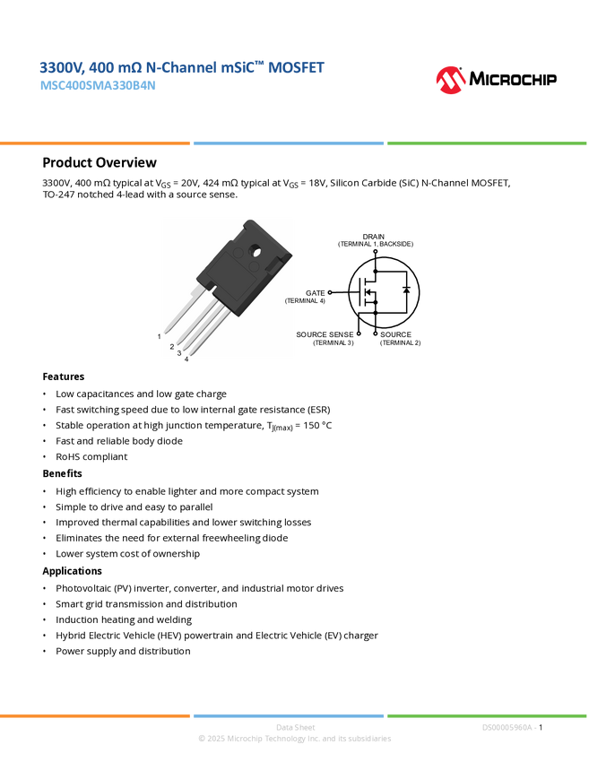 MSC400SMA330B4N 3300V, 400 mOhm mSiC™ MOSFET TO-247-4 Notch Datasheet