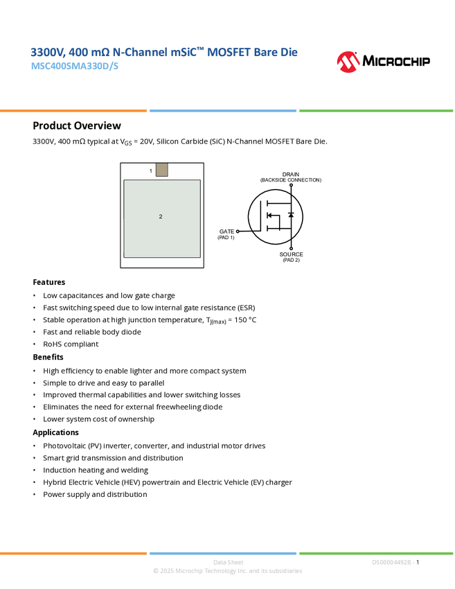 MSC400SMA330D/S 3300V, 400 mOhm mSiC™ MOSFET Die Datasheet