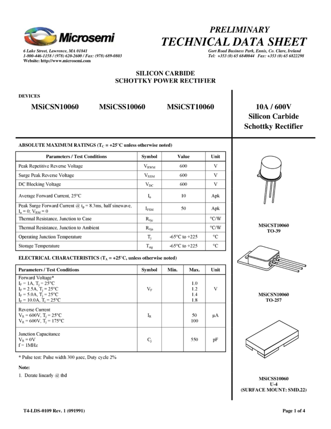 MSC750SMA170B4 1700V 750 mOhm mSiC™ MOSFET TO-247-4 Datasheet