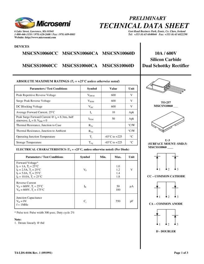 MSC090SMA070S 700V, 90 mOhm mSiC™ MOSFET TO-268 Datasheet