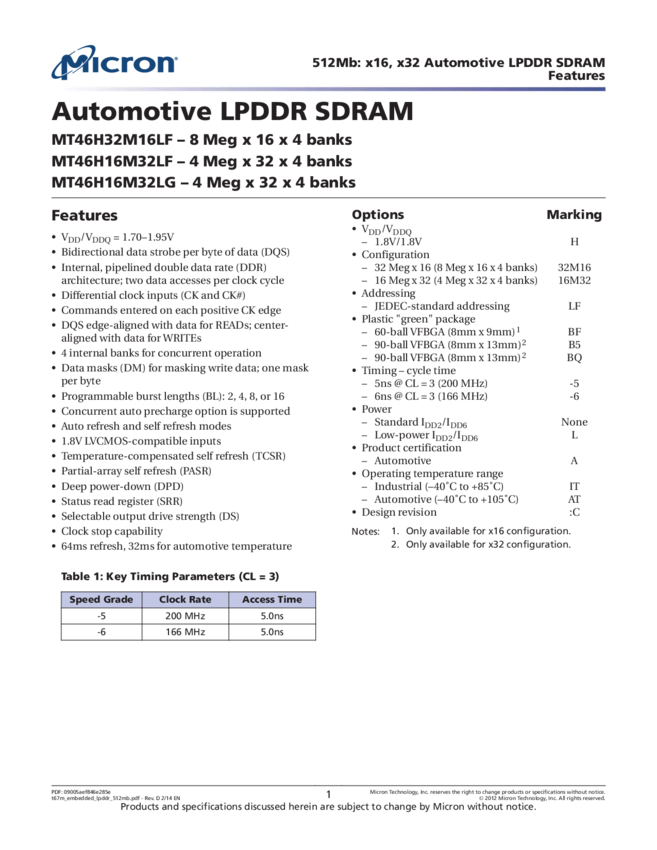 DRAM Chip Mobile LPDDR SDRAM 512M-Bit 16Mx32 1.8V 90-Pin VF-BGA T/R