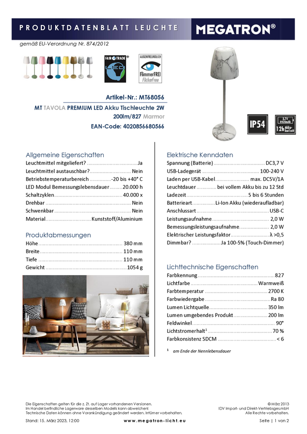 Akumulatorowa lampka stołowa Megatron TAVOLA MT68056 2 W szary marmurowy 200 lm