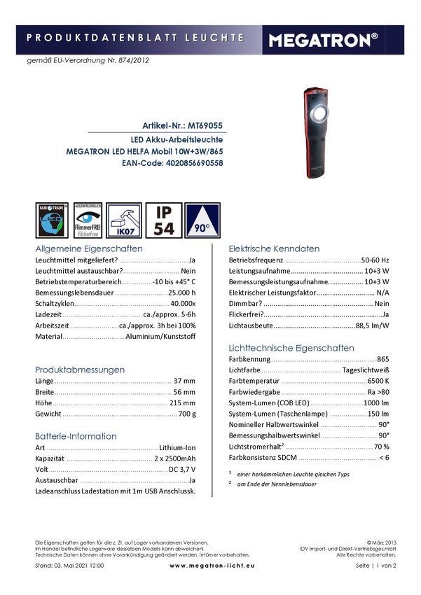 Lampa ręczna Megatron Helfa Mobil Cob MT69055