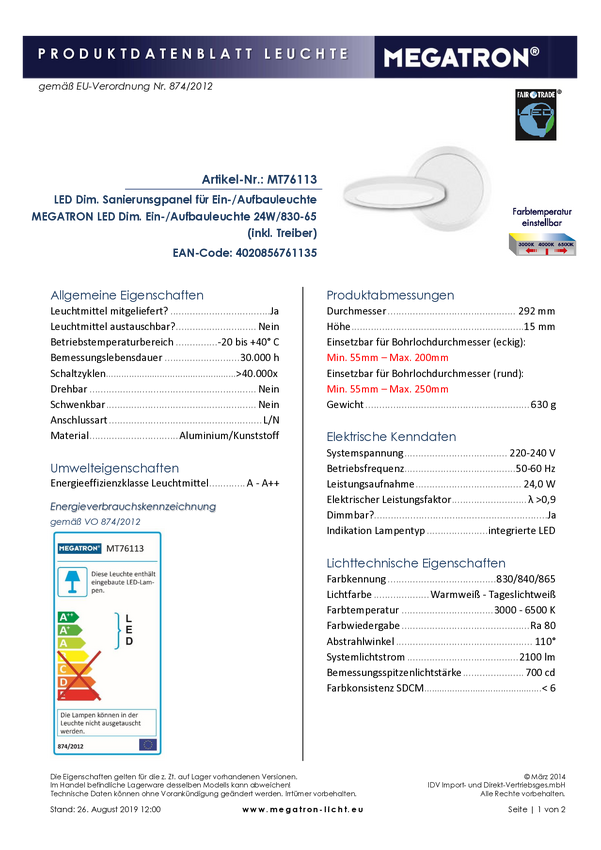 Lampa natynkowa LED Megatron MT76113 LED LED wbudowany na stałe 24 W biały