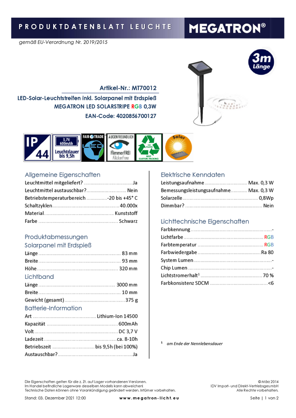 Łańcuchy świetlne- solarne Megatron MT70012 RGB