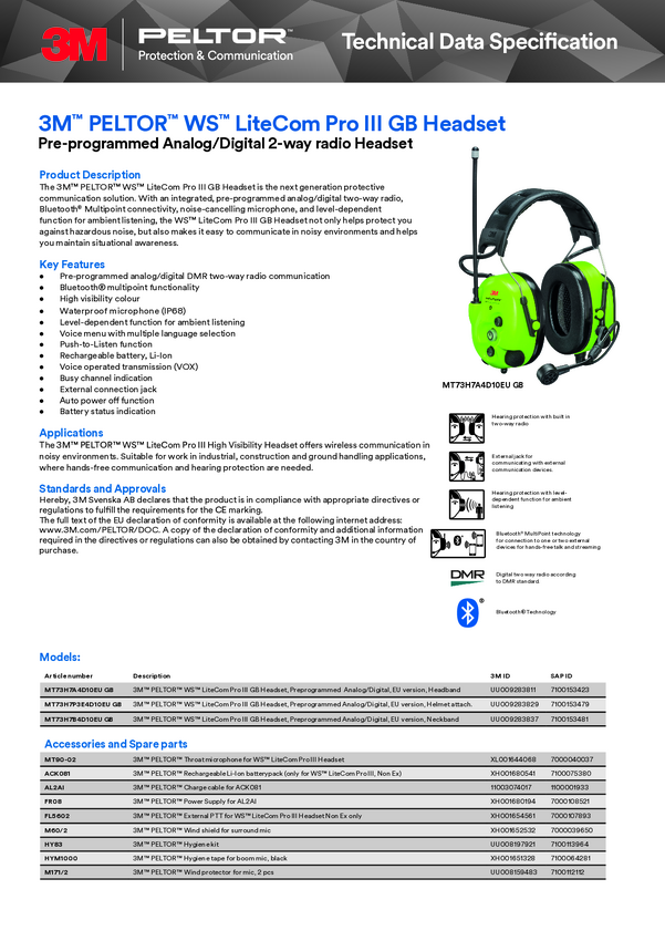 3M Peltor LiteCom PRO III MT73H7P3E4D10EU GB Słuchawki ochronne z mikrofonem 32 dB 1 szt.