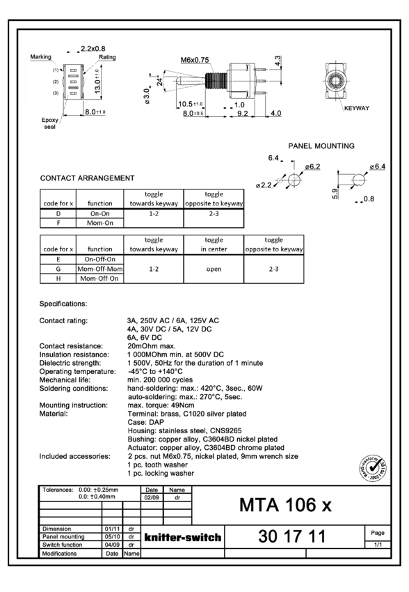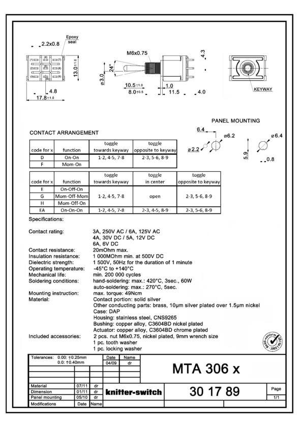 Switch Toggle Mom OFF Mom DPDT Round Lever Solder Tag 6A 250VAC 30VDC Panel Mount with Threads