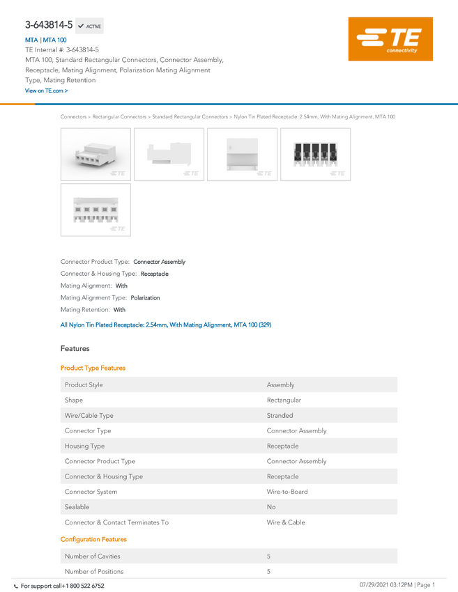 TE Connectivity 3-643814-5 TE AMP MTA-100 CL Connectors, 1 szt.