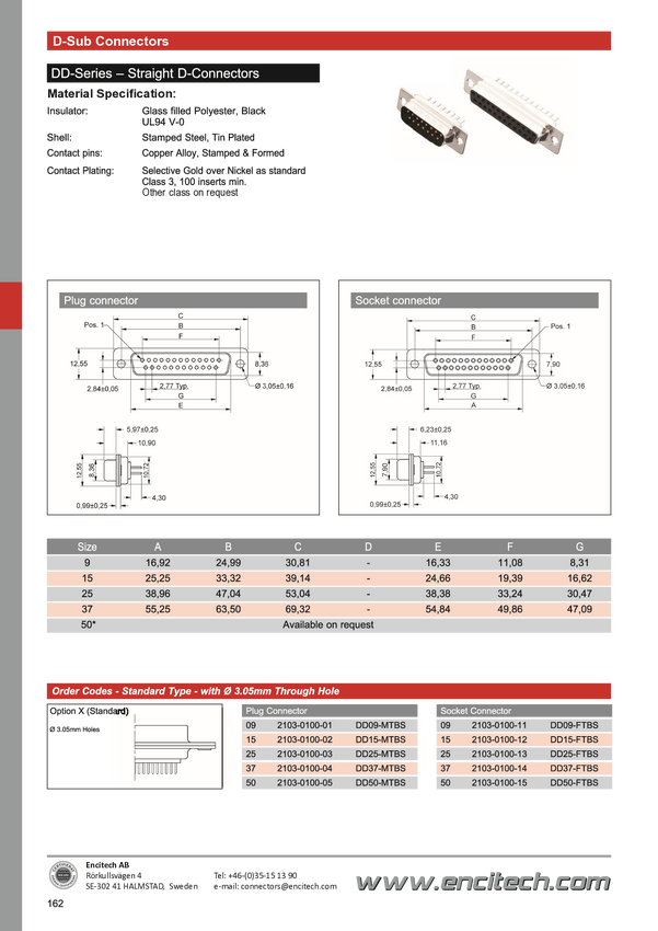 encitech DD25-MTBS 2103-0100-03 Listwa męska D-Sub 180 ° Ilość styków: 25 piny lutownicze 1 szt. paleta
