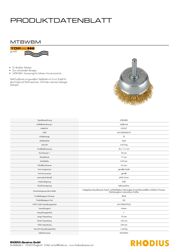 Rhodius Szczotka MTBWBM 353237 20 szt.