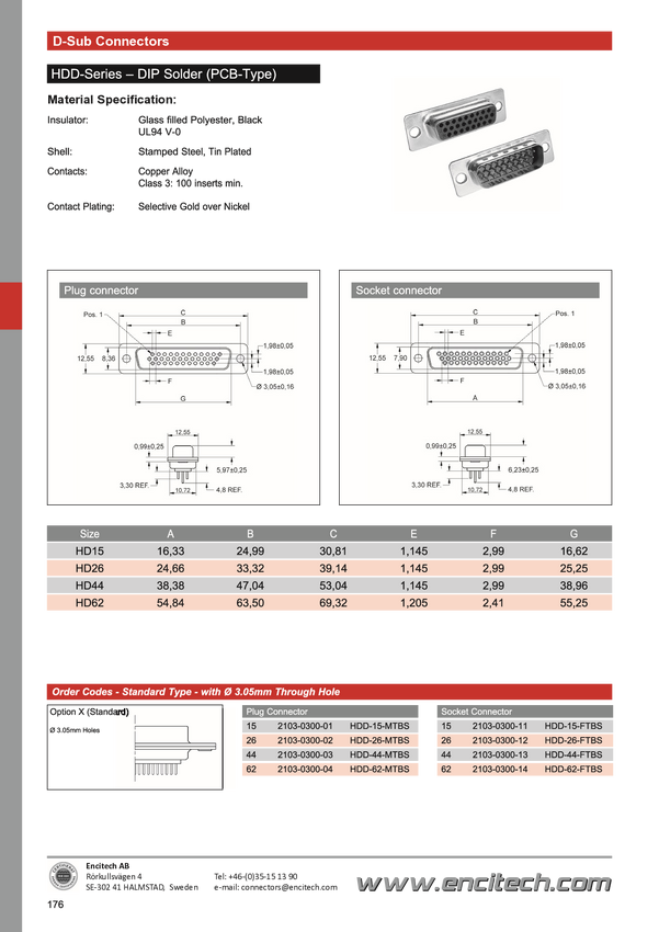 encitech HDD-15-MTBS 2103-0300-01 Listwa męska D-Sub 180 ° Ilość styków: 15 piny lutownicze 1 szt. paleta