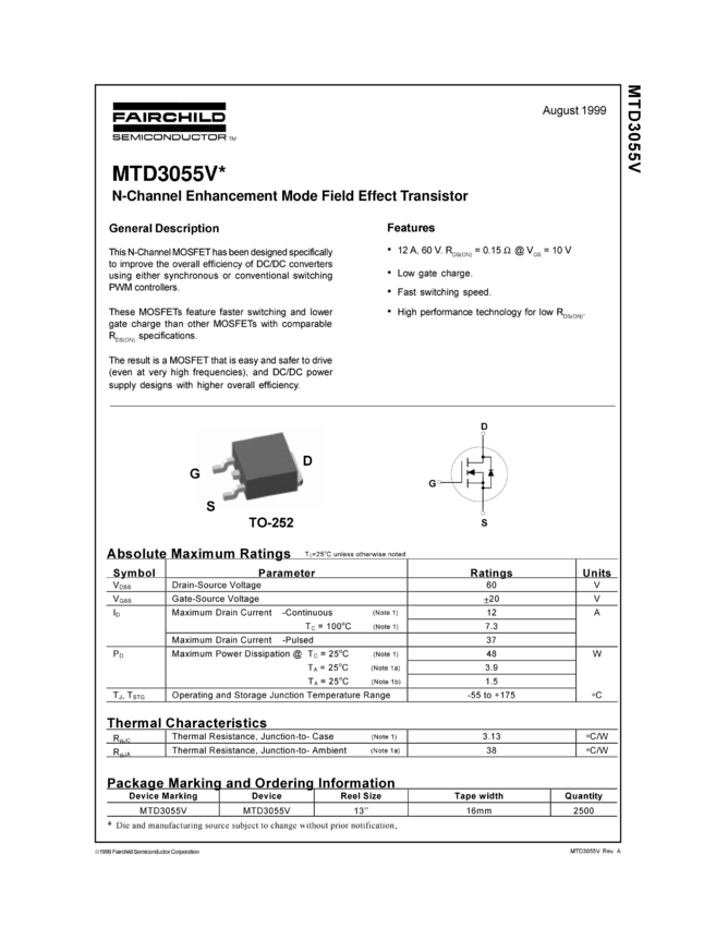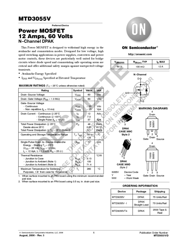 Power MOSFET 12 Amps, 60 Volts N-Channel DPAK