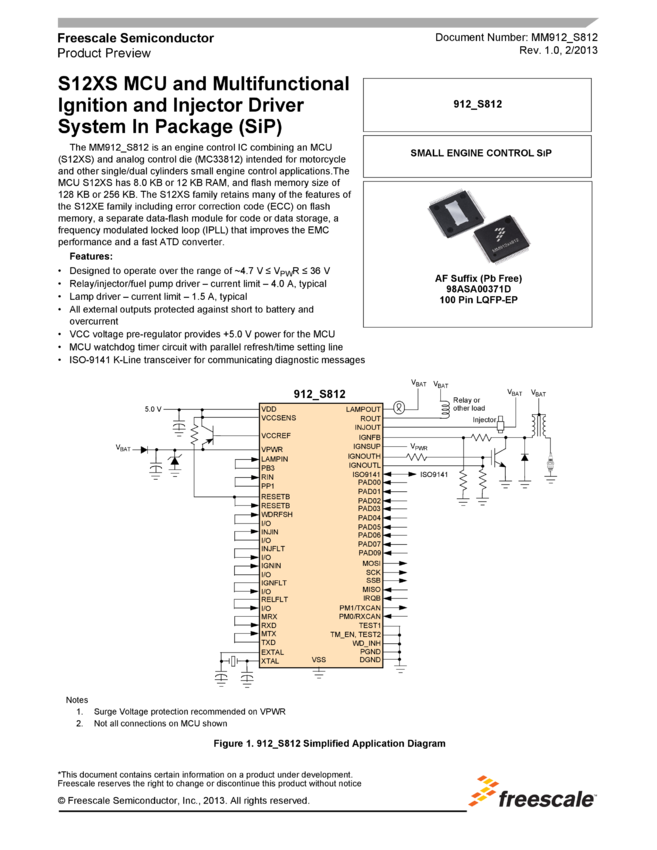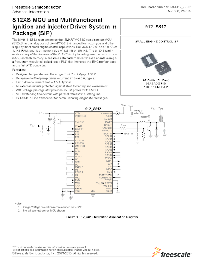 MM912_S812, S12XS MCU and Multifunctional Ignition and Injector Driver System In Package (SiP)