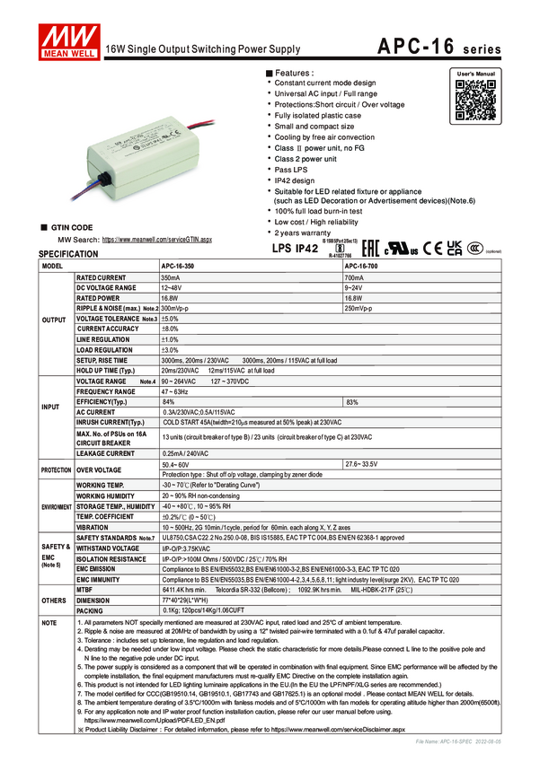 APC-16-350 MEAN WELL APC-16-350, N/A, multikolor