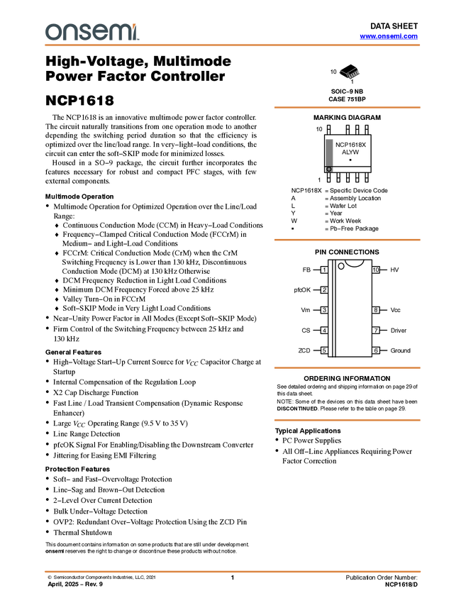 Multimode (CrM-CCM) Power Factor Controller, Active X2