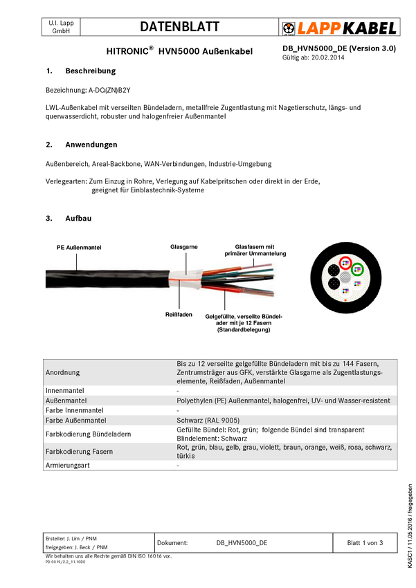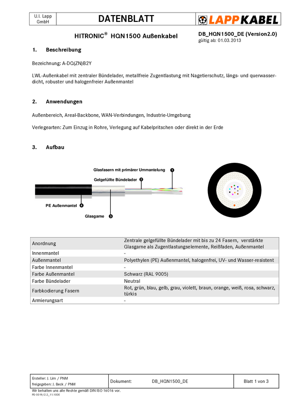 LAPP 27600308 Kabel światłowodowy Hitronic HQN 50/125 µ Multimode OM3 czarny 4000 m