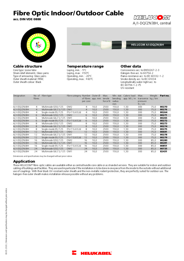 Helukabel 80265-100 Światłowód Multimode OM1 czarny 100 m