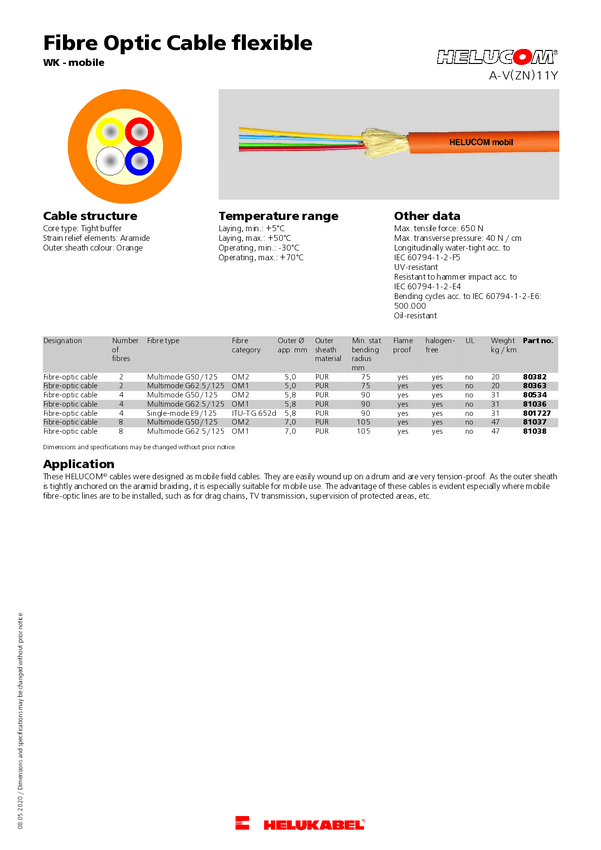 Helukabel 80534-100 Światłowód Multimode OM2 pomarańczowy 100 m