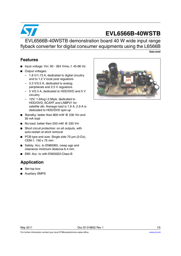 40 W wide input range flyback converter using L6566BH Multimode controller for SMPS
