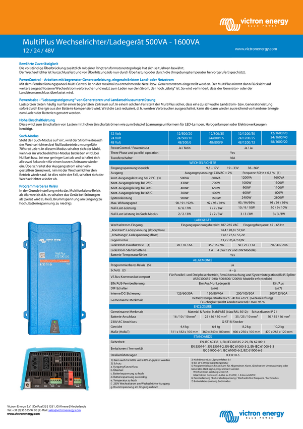 Przetwornica samochodowa Victron Energy PMP242160000 MultiPlus 1600 W