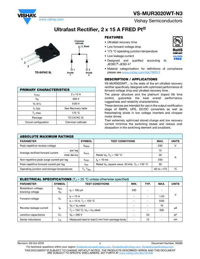 Ultrafast Rectifier, 2 x 15 A FRED Pt®