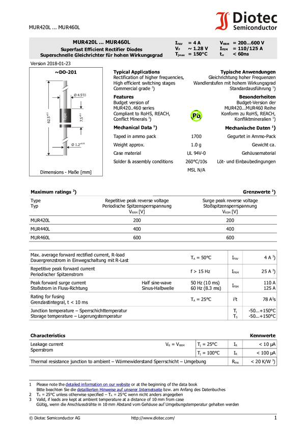 Dioda prostownicza Diotec MUR440L N/A N/A