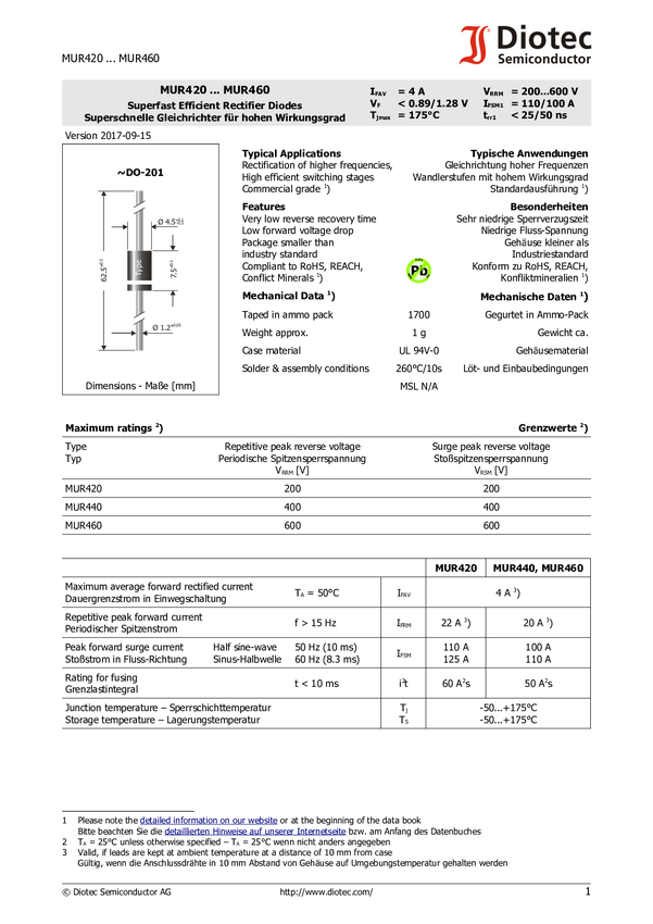 Dioda prostownicza Diotec MUR440 N/A N/A