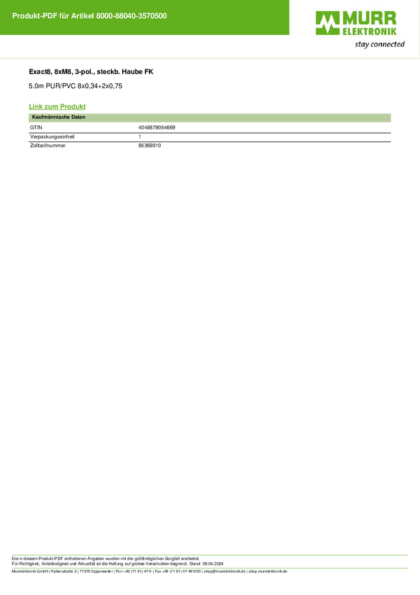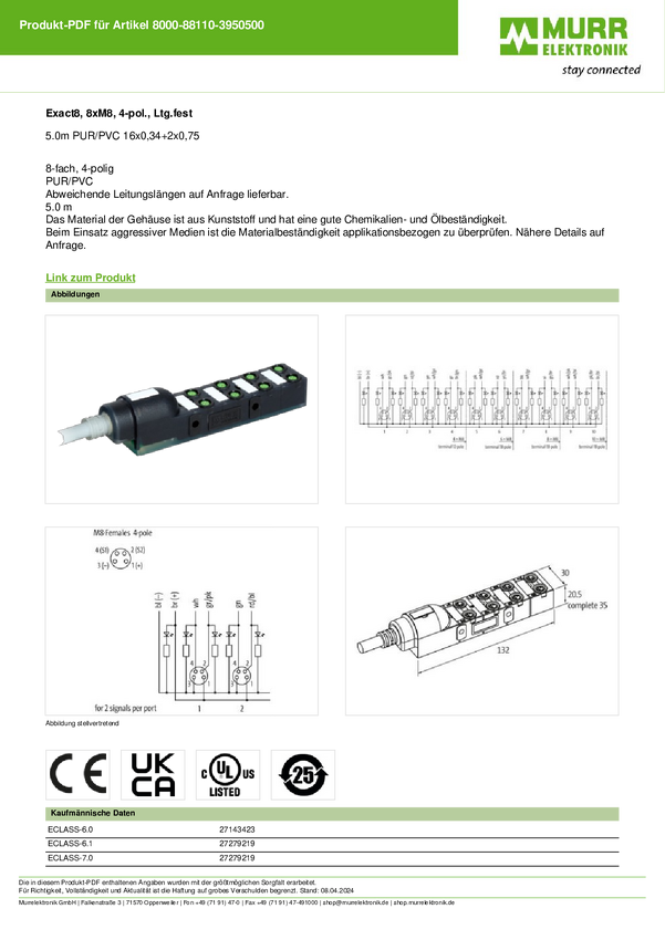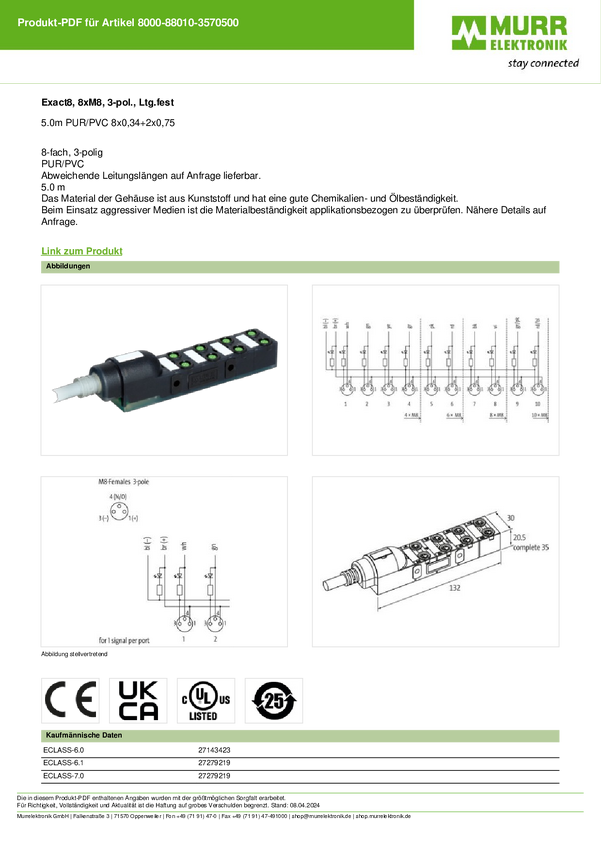 Rozdzielacz czujnik / element wykonawczy, pasywny Murrelektronik Murr Elektronik 8000-88040-3570500 1 szt.