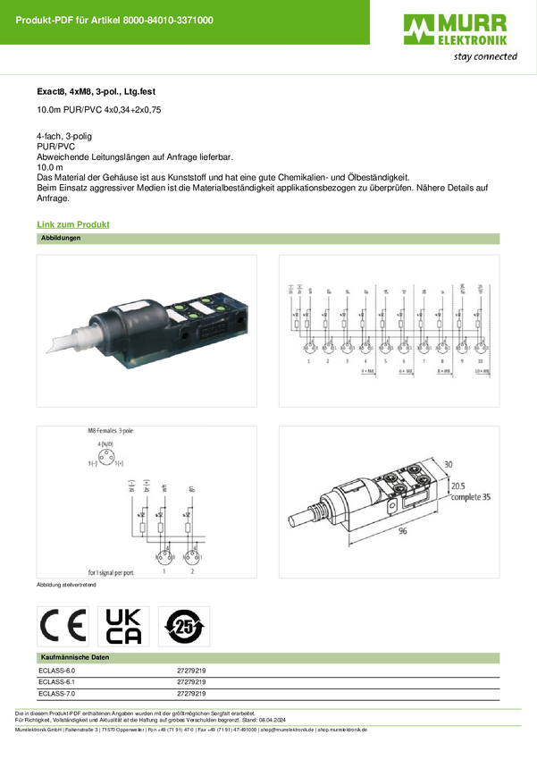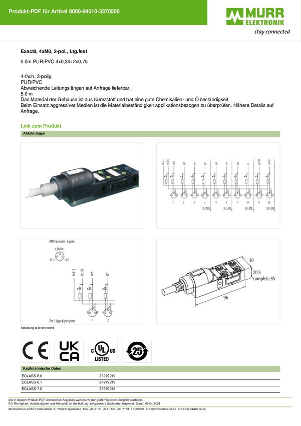 Rozdzielacz czujnik / element wykonawczy, pasywny Murrelektronik 8000-84010-3371000 1 szt.