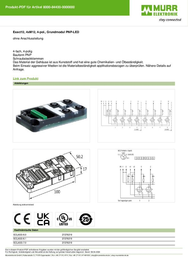 Murrelektronik 56440 56440 Moduł I/O Liczba wyjść cyfrowych: 4 Liczba wejść cyfrowych: 4