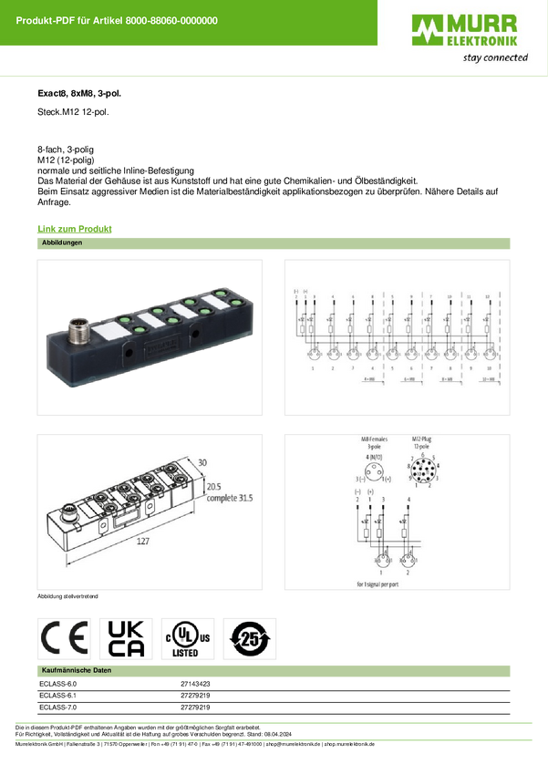 Rozdzielacz czujnik / element wykonawczy, pasywny Murrelektronik 8000-84060-0000000 1 szt.