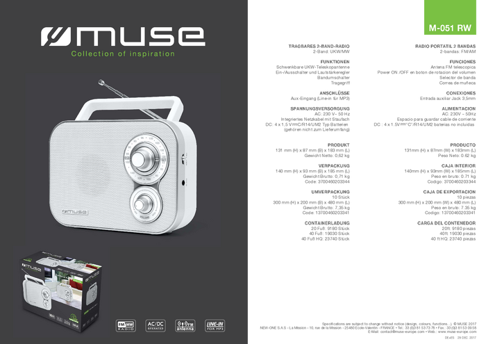 Radio przenośne Muse M-051 RW fale metrowe (VHF), FM, fale średnie (MF) biały