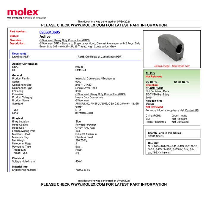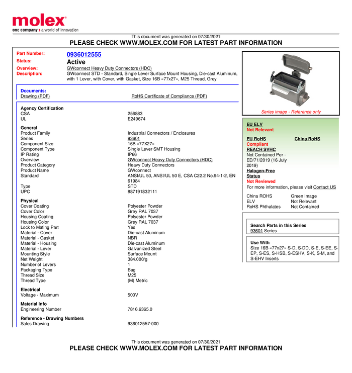 Złącze 936010307 MWE Industrial Solution szary Molex Zawartość: 1 szt.