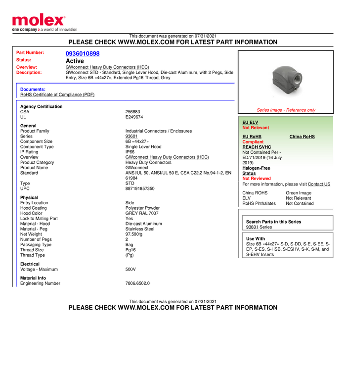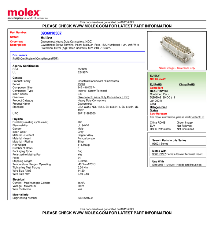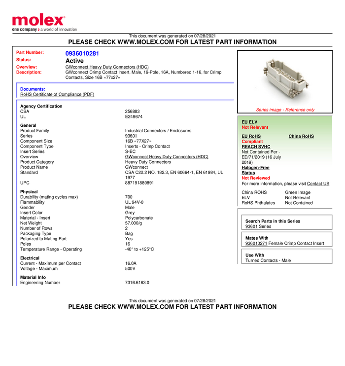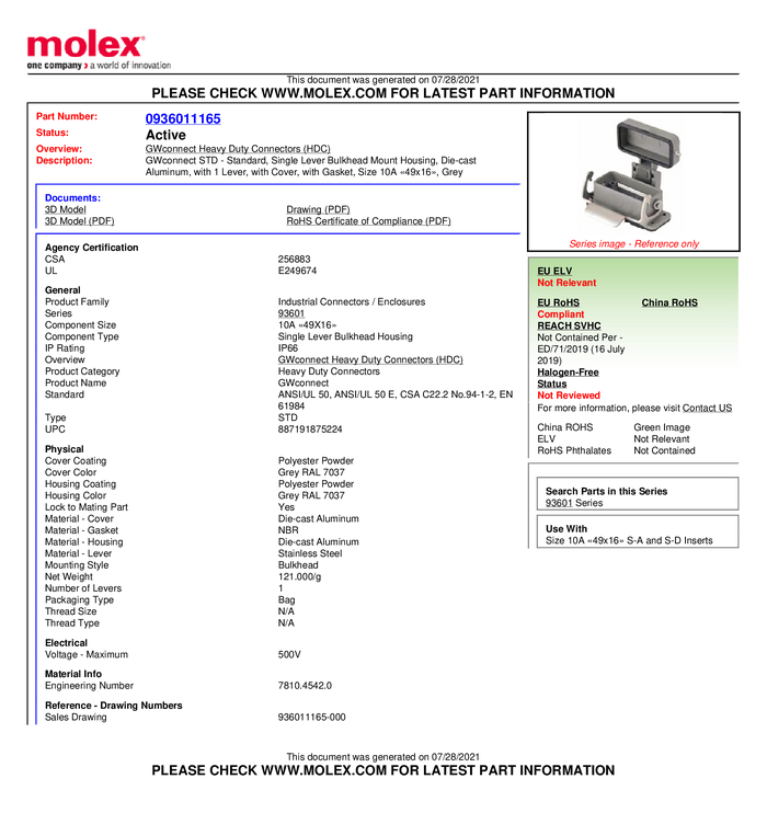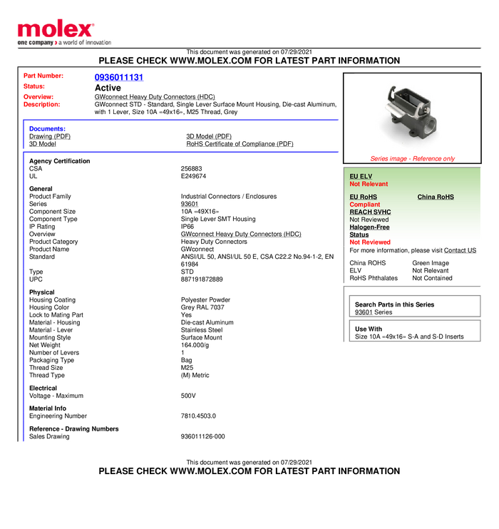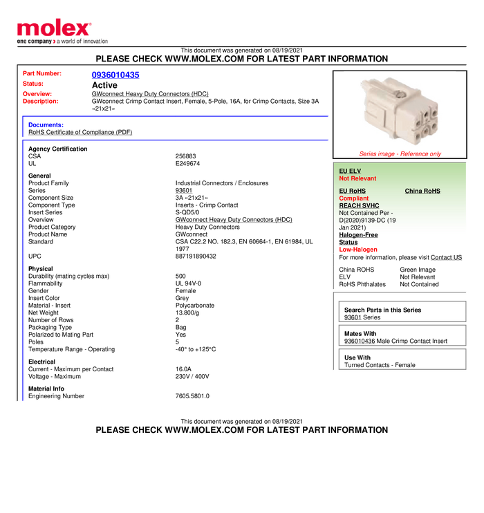 Złącze 936011131 MWE Industrial Solution szary Molex Zawartość: 1 szt.