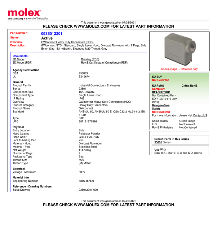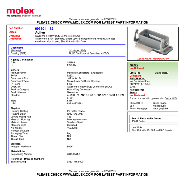 Złącze 936011162 MWE Industrial Solution szary Molex Zawartość: 1 szt.