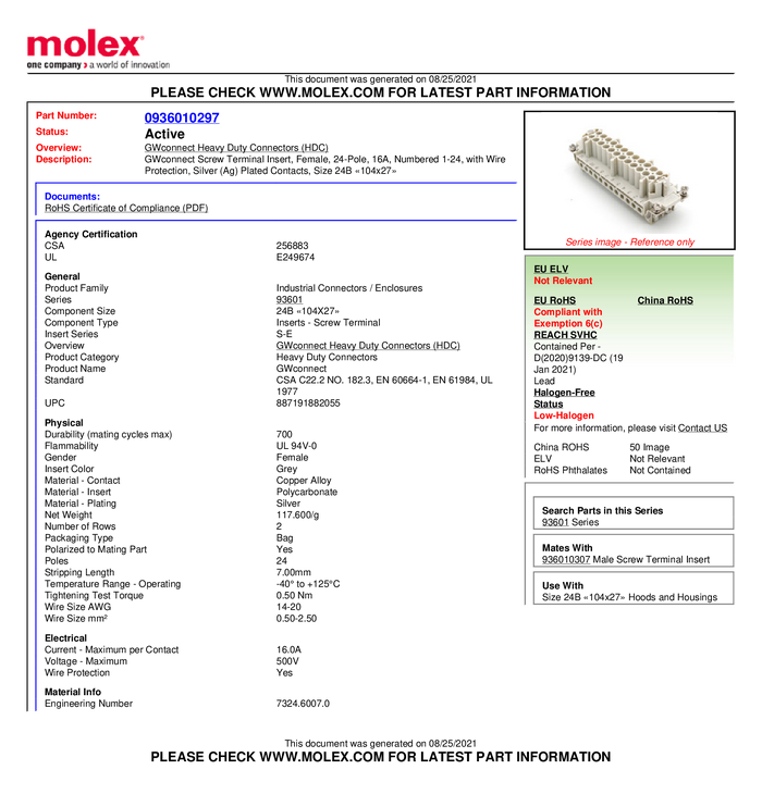Złącze 936010297 MWE Industrial Solution szary Molex Zawartość: 1 szt.